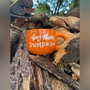 Adorable small pumpkin planter pot that says “Hey there pumpkin.”