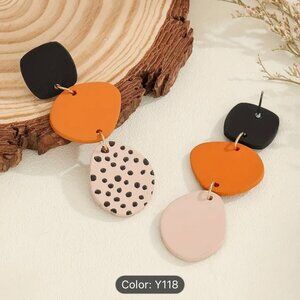 Neutral and spicy at the same time. I can smell the pumpkin spice in the air when I look at these earrings. 3 clay style pieces joined together to form an over sized drop topped with a straight post back. Black, burnt orange and black spots are the perfect accessory for that cute little athleisure outfit that make fall days so special. These would work with almost anything you put together between September and November. Snap them up while you can. Don't forget to scroll through the rest of my closet to add all your other must haves to your cart before you check out. 25% discount when you buy 3 or ,ore items at one time. Thank you for stopping by my closet!