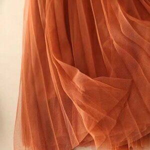 Pumpkin Spice Women's Elegant Pleated Mesh A-Line Skirt