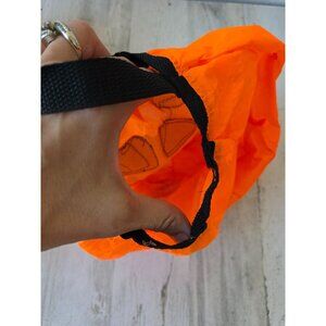 all good condition, comes as a set, plush pumpkin is 9in tall by 6 5" diameter, plastic bucket without handle is 5"tall by about 6" wide