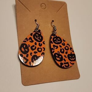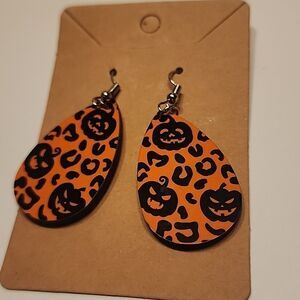 Pumpkin Dangle Teardrop Earring Halloween Spooky Season Orange Black Silver
