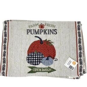 Pumpkin Fall Harvest Tapestry Placemats Set Of 4. New with tags. “Farm Fresh Pumpkins Open Daily” 13” x 18”.