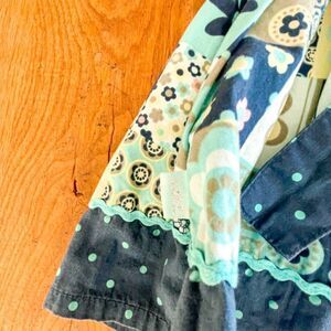 Patchwork fabric with polka dot tie sash