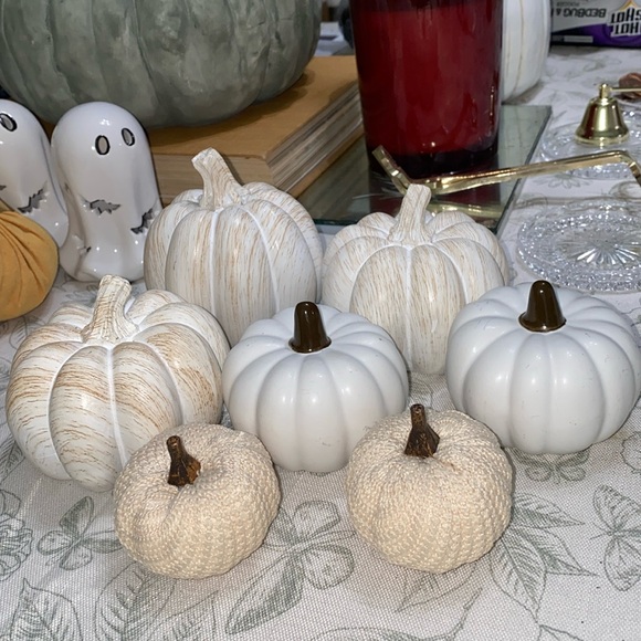 Set of 7 small n mini pumpkins. 2 minis are fabric others are ceramic
