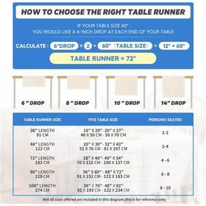 Fits Table Size : This table runner is 13 x 72 inch, appropriate for a table that can seat 4-6 people, better match your table and give you a delightful dining experience