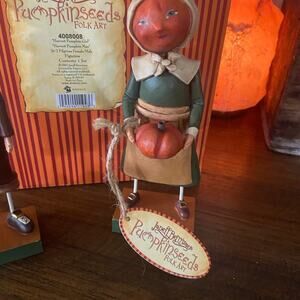 Pumpkinseeds Set of 2 Harvest Pumpkin Figurines Boy & Girl By Janell Berryman
