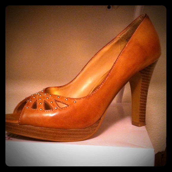 Tan pumps with little gold gems, wore only a few times (fits more like a 7 1/2)