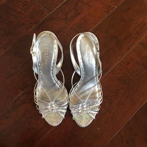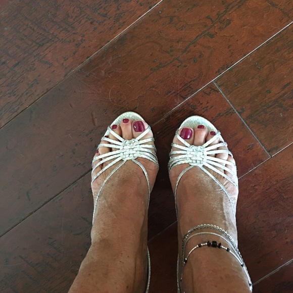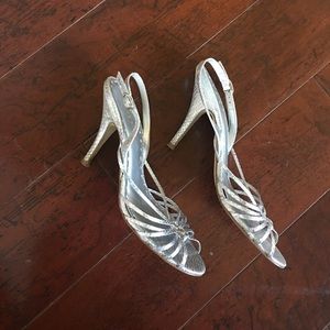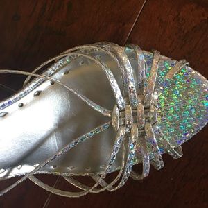 Bcbg silver straps they glisten so pretty 2 inch heels great condition