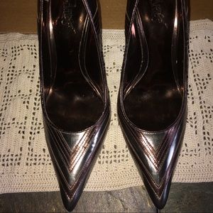 Pewter and dark Mahogany pumps with a metallic finish. Worn only once! Great condition with minimal ware.