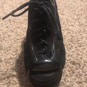 Gianni bini open toe platform pumps. Black suede lace up in front. Worn 3 times.