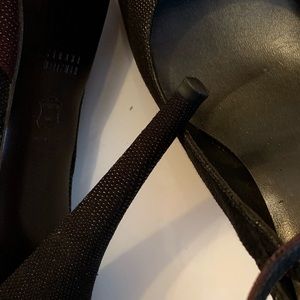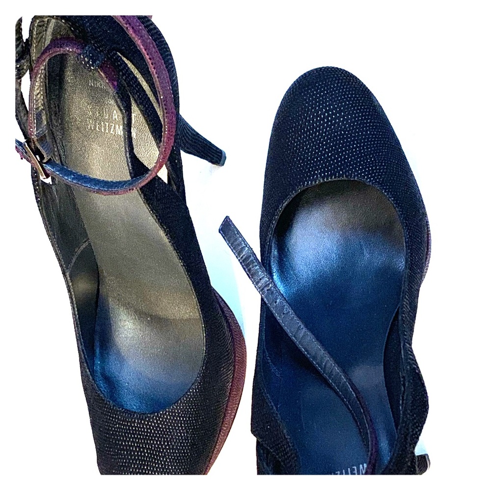 Stuart W black and burgundy pumps with cross ankle straps. Have worn only once. Comes with the box and dust bag