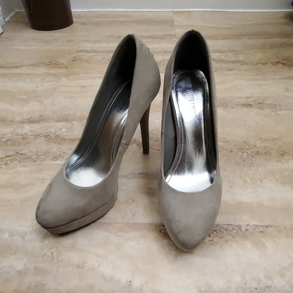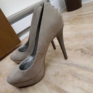 Beautiful greyish tan suede 5" pumps by Jennifer Lopez, worn once, too big for me. Virtually no wear.