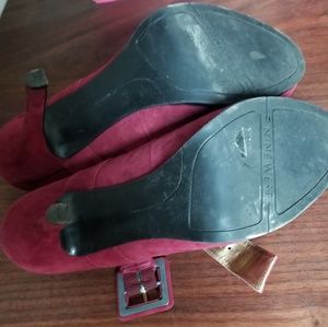 Burgundy/ wine color pumps. Slight platform which makes them very comfortable. Lightly used, probably wore 8-10 times if that