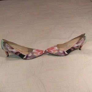 Nine west pumps. A floral design and 3" pointed toe pumps. Excellent condition. Size 8 1/2. Used.