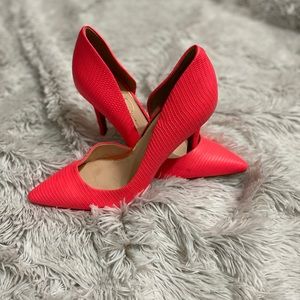 Hi . You have these as hot pink. But they look like red in pictures. Any way you can do another picture to tell color of pink? And is there anything wrong with them. Scratches back of heel have any scuffs?