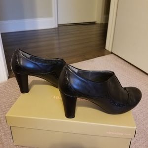Black leather. Worn twice. Goring across top of foot. Easy in/out.
