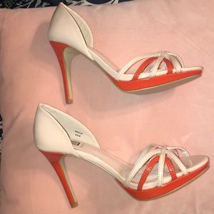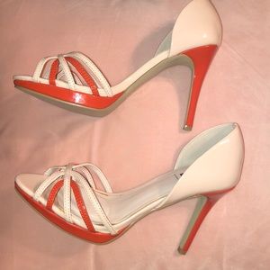 Beautiful Open toe Orange and nude heels. Worn once to try on only! great condition! Pair with pale pink lace top from my closet!🥰