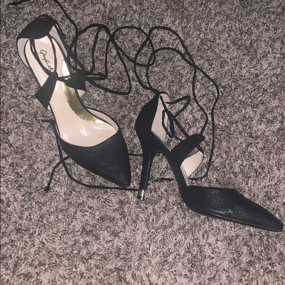 Black strapy 7.5 point toe pumps