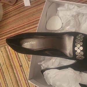 Black suede studded suede pump., 4.5 inches. Excellent condition.