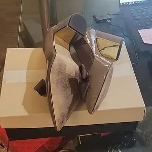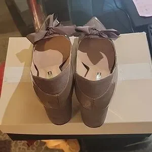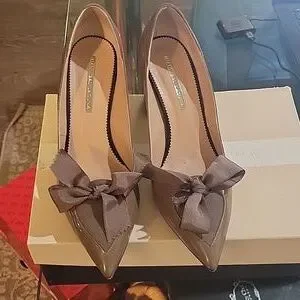 Erica Hannibal Laguna Lenora pumps in charol taupe/ante taupe, with bow detail. U.S size 8, European size 38. worn twice and in great condition. about 3.5 inches.