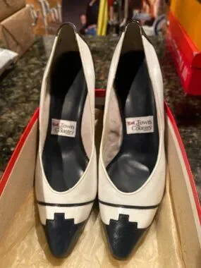Vintage Leather Navy Blue and White Pumps, Size 7M