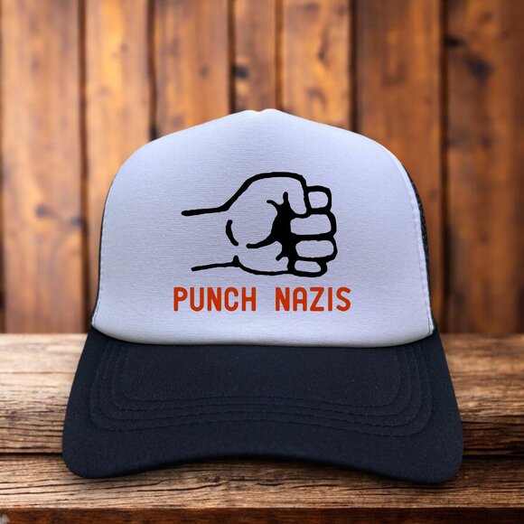 Punch Nazis Mens Trucker Hat Black Snapback Anti Facist Anarchy Baseball Cap