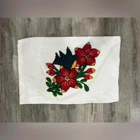 Punch needle embroidery flower and Bird Pillow case