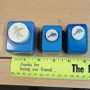 This lot of 10 Punch Art, Emagination paper punches is a great addition for any scrapbooking enthusiast. Each punch is designed with a unique theme, allowing for endless creative possibilities. The punches are all less than 1 inch in size, making them perfect for adding small details to your projects.