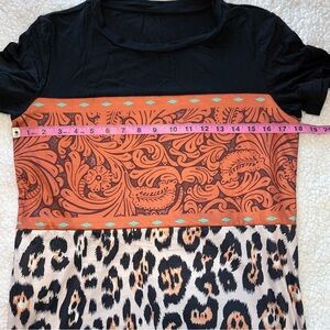 Punchy Western Cheetah Leopard Embroidered Faux Leather Short Sleeve T ShirT