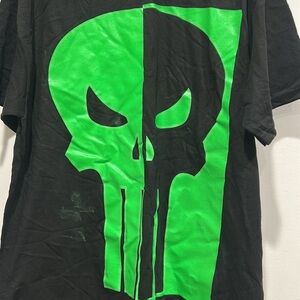 Punisher split Black T-Shirt with Green black Skull Graphic large