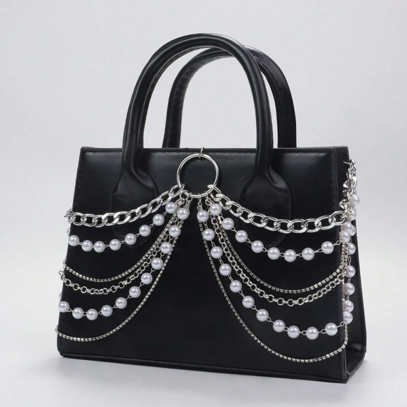 Make a bold style statement with this Punk Gothic Pearl Chain Mini Shoulder Bag.