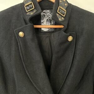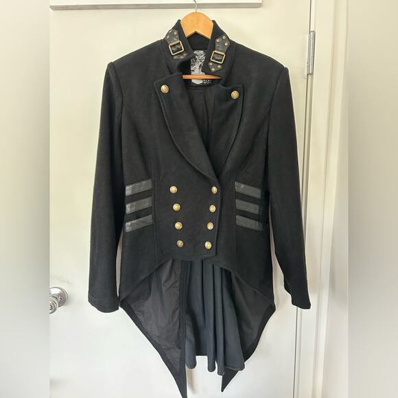 Punk Rave steampunk swallow tail wool blend with leather trim unisex jacket