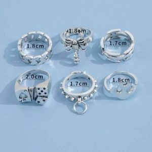Punk Rock Lucky Dice Silver Scorpion Flame Chain Barbed Wire Ring Set of 6