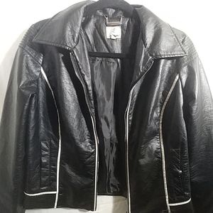 Black jacket with white trim in both front and back. Perfect jacket to deck out. Size small but fits a medium. Great condition, only wore it out twice. Non-smoking home.
