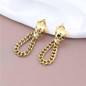 Turn heads with these bold punk skull chain jacket earrings. Featuring detailed skull charms, curb chain tassels, and a gothic-inspired design, these earrings are the perfect mix of punk, edgy, and chic.