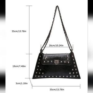 Punk Street Fashion Rivet Chain Decor Solid Color Vintage Elegant Shoulder