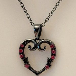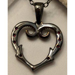 Punk Style Black Heart Pendant with Rubies In 925 Silver, Beautiful!