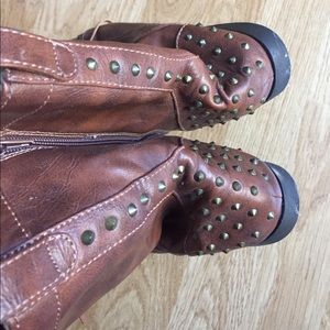 Punk rock style brown boots with spikes 7.5