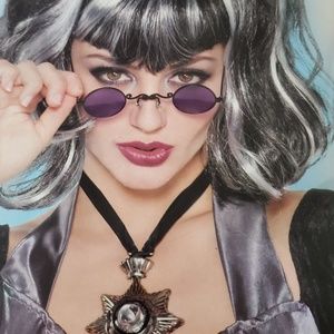 Punk wig! Black and white pig tails and bang.