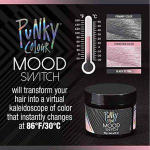 Doesn't matter what your hair color is because Punky Colour Mood Switch will change your hair color instantly at 86 degrees F. Cool down and hair instantly changes back to original shade. Warm up again and your hair switches back.