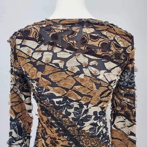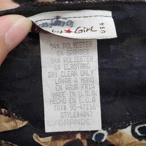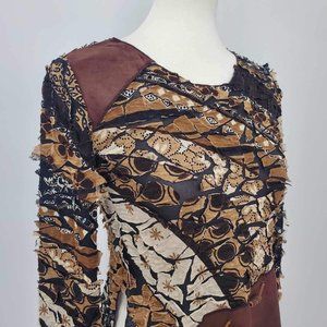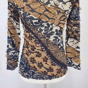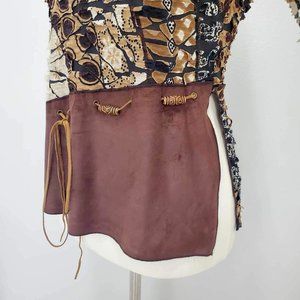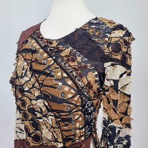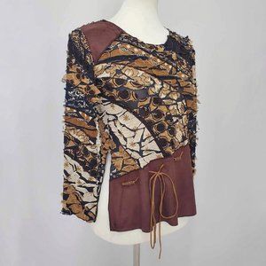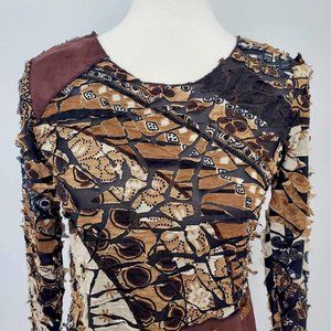 Punky Girl Brown Multi Print Distressed Beaded Top Women’s Size Large
