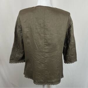 Punt Roma Taupe 100% Linen Embroidered Lace Jacket NWT