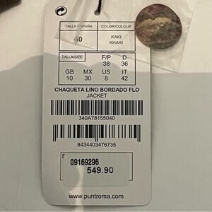Punt Roma Taupe 100% Linen Embroidered Lace Jacket NWT