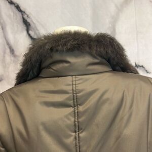 Punt Roma brown quilted jacket with fur trim excellent condition no damage fast measures 21 inches across length flat shoulder to bottom 29 inches