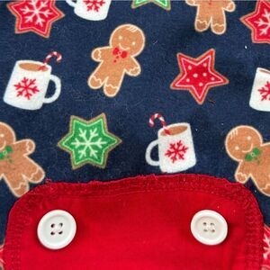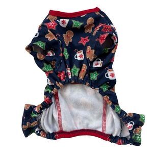 Dog pajamas with cocoa mugs and gingerbread men are adorable and cozy outfits designed specifically for our furry friends. These pajamas feature a delightful pattern, perfect for adding a touch of festive cheer. They are made from soft and comfortable materials to ensure that your dog stays warm and comfortable during chilly nights. The pajamas are designed to fit snugly, providing full coverage and protection for your dog's body. With these cute dog pajamas, your furry companion will look absolutely adorable and ready to join in the holiday spirit!