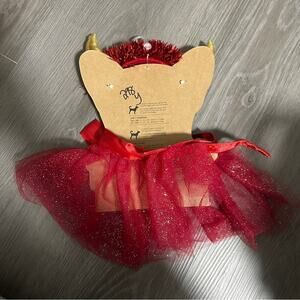 Pup Crew Pet Dog Devil Horns & Red Tutu Halloween Costume Set NWT Size M/L