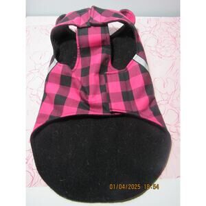 This stylish jacket features a chic pink and black plaid pattern and a reflective "V" on the back for added safety during evening walks.