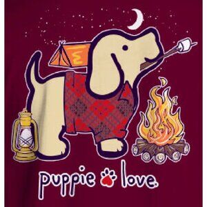 Puppie Love Dog Camping Pup and Toasted Marshmallows Short Sleeve T-Shirt NEW