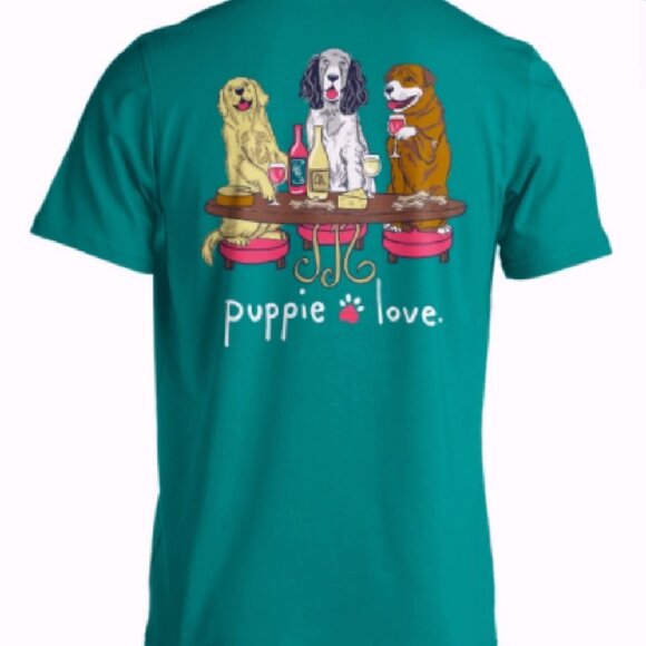 Puppie Love Dog Wine & Cheese Party Pup Short Sleeve T-Shirt - NEW Fast Ship