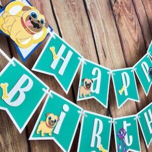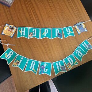 Ordered off Etsy from a shop that is no longer active. It is high quality, thick Card Stock and beautifully printed images. There is a white ribbon that has a little slack on each end for hanging. Happy and Birthday only. There is a little wear as it was folded and kept in a ziplock bag so the corners on a couple are not as sharp and the ribbon shows folding, but can still easily hang up and be a showstopper.